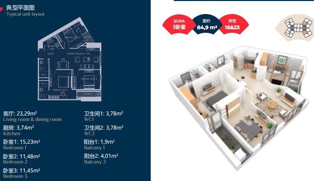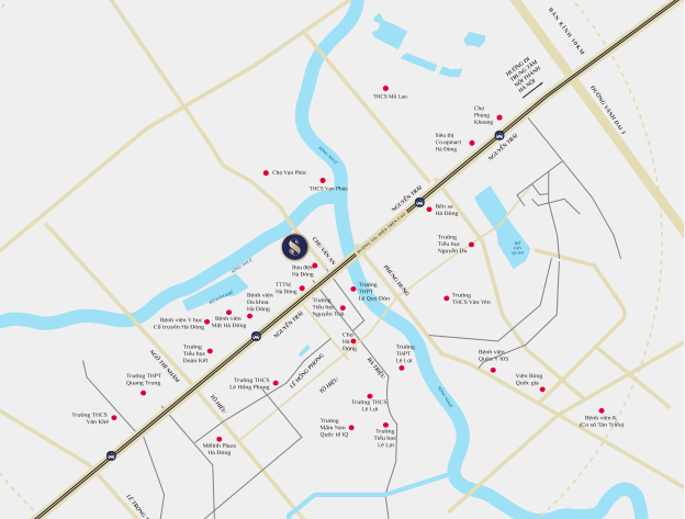 地理位置佳:位于河内市河东郡的中心区域,紧邻两座大型公园绿地,周边行政机关林立。