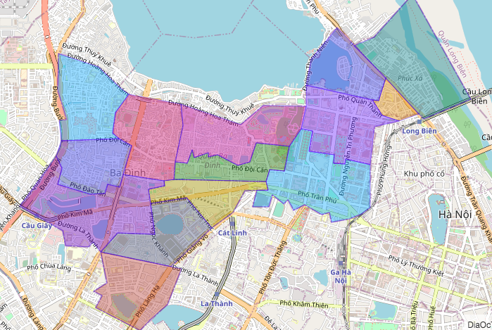 巴亭是河内的行政中心,越共中央机关办公驻地,主席府等作为越南国家领导人会见外宾和举行重大活动的场所皆坐落于此。同时巴亭郡也汇集了众多大使馆,例如加拿大,西班牙,波兰,捷克共和国,伊朗,日本,澳大利亚和巴基斯坦大使馆等。其中尤以日本居民聚集区最具特色,夜幕降临下日式的各色居酒屋在门口挂着灯笼,让路人仿佛来到了大阪的街头。